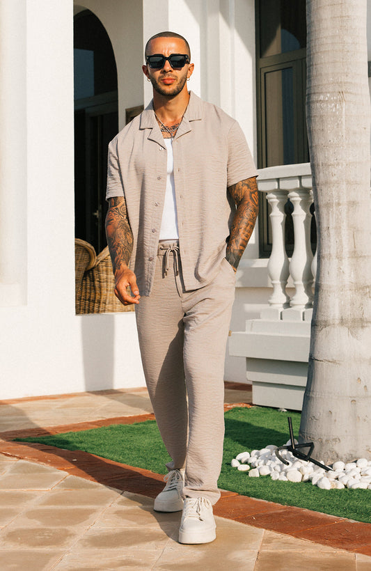 Monaco Crinkle Textured Poly Cotton Pants - Sand