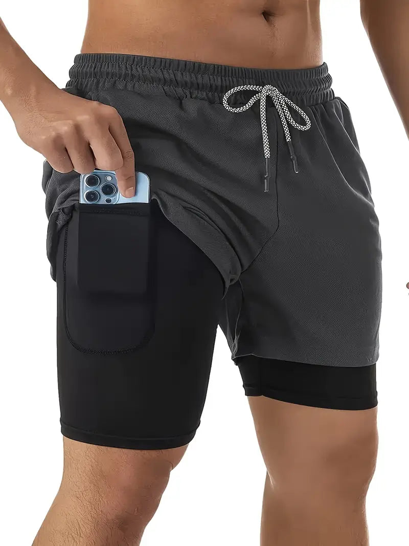 • Tennis style above knee shorts. With Hidden Phone Pocket