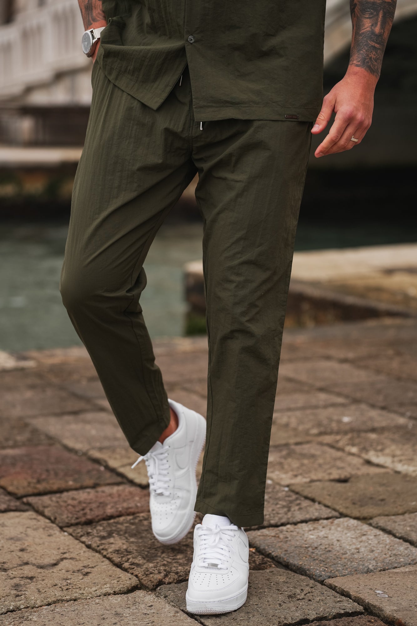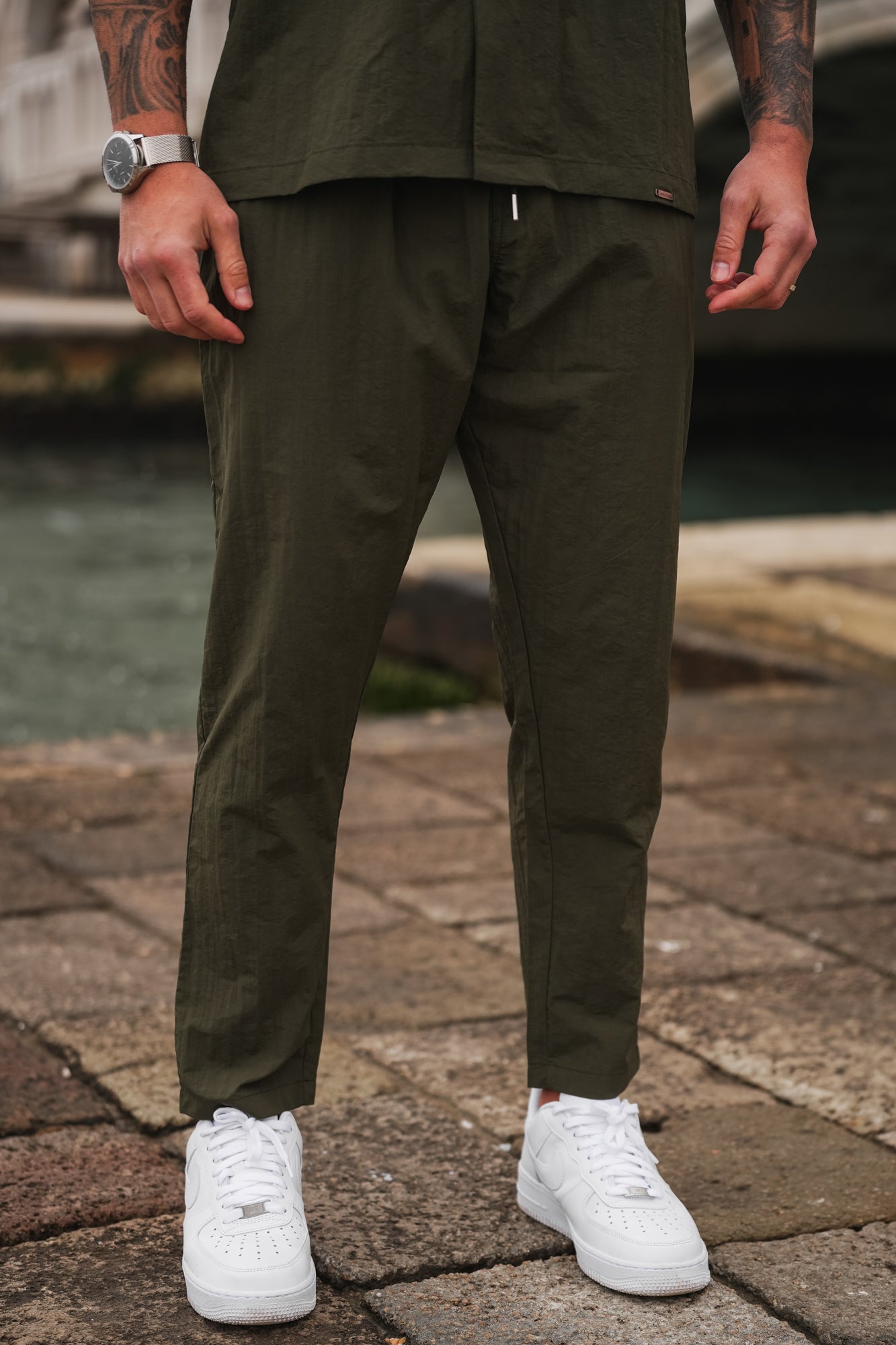 Monaco Crinkle Poly Textured Cotton Trouser - Olive