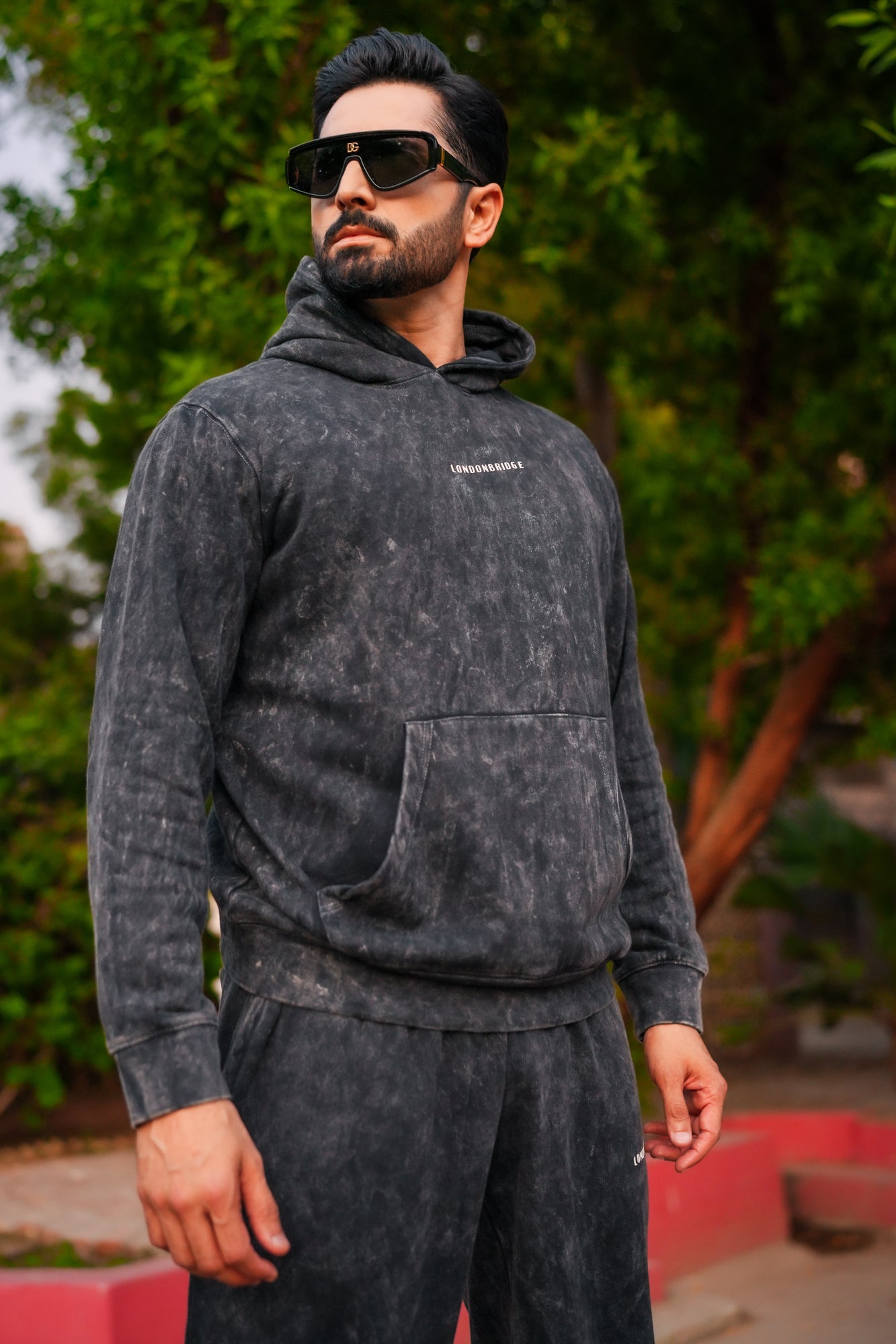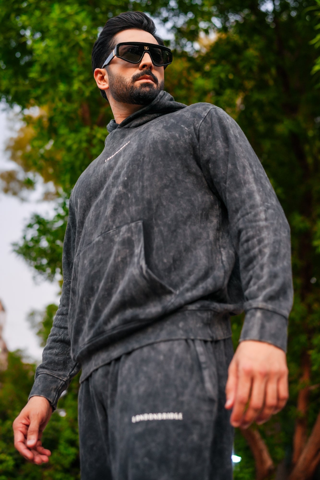 Washed Vintage Cotton Hoodie - Black