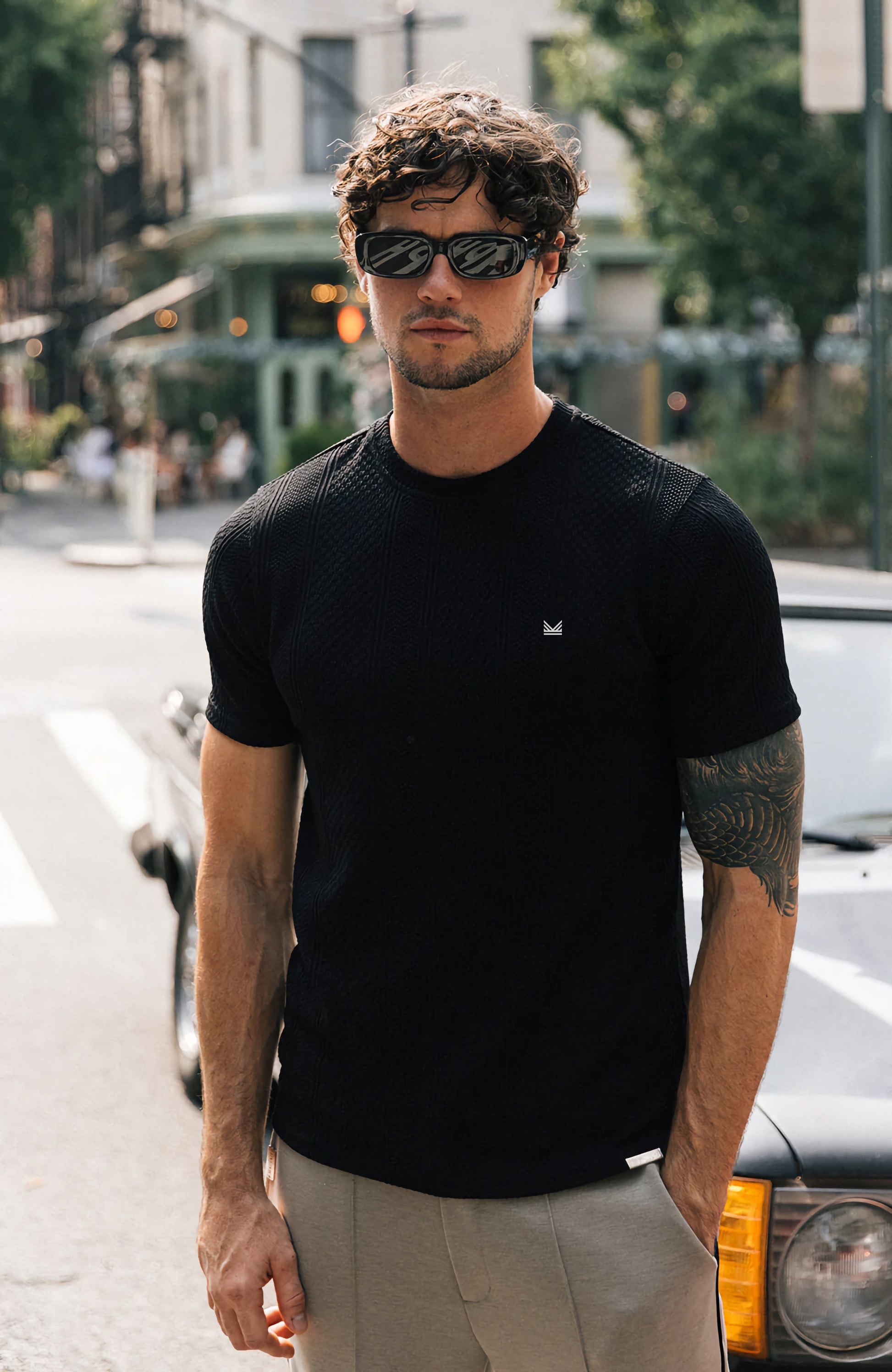 Cedro Textured Knit Cotton Tee in Black