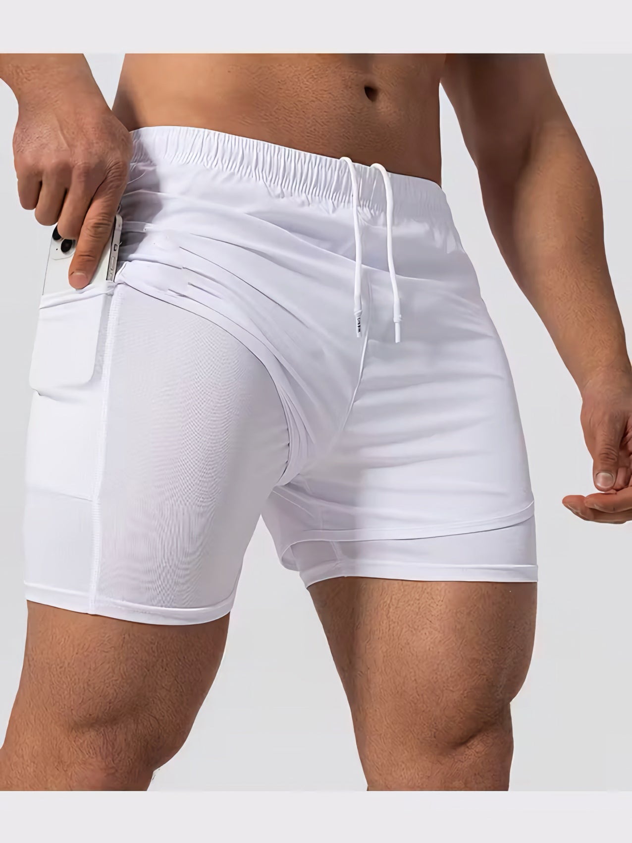 • Tennis style above knee shorts. With Hidden Phone Pocket