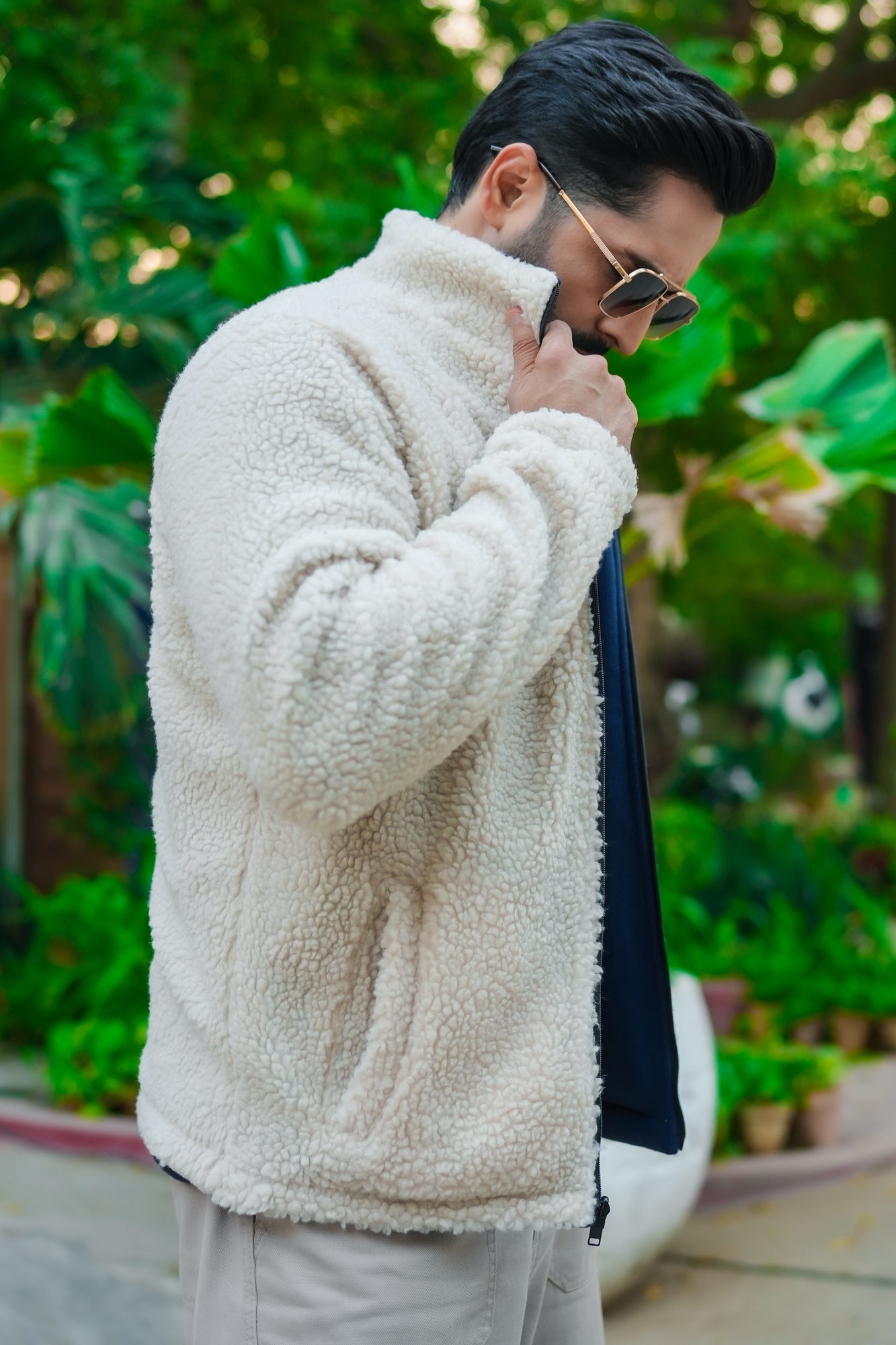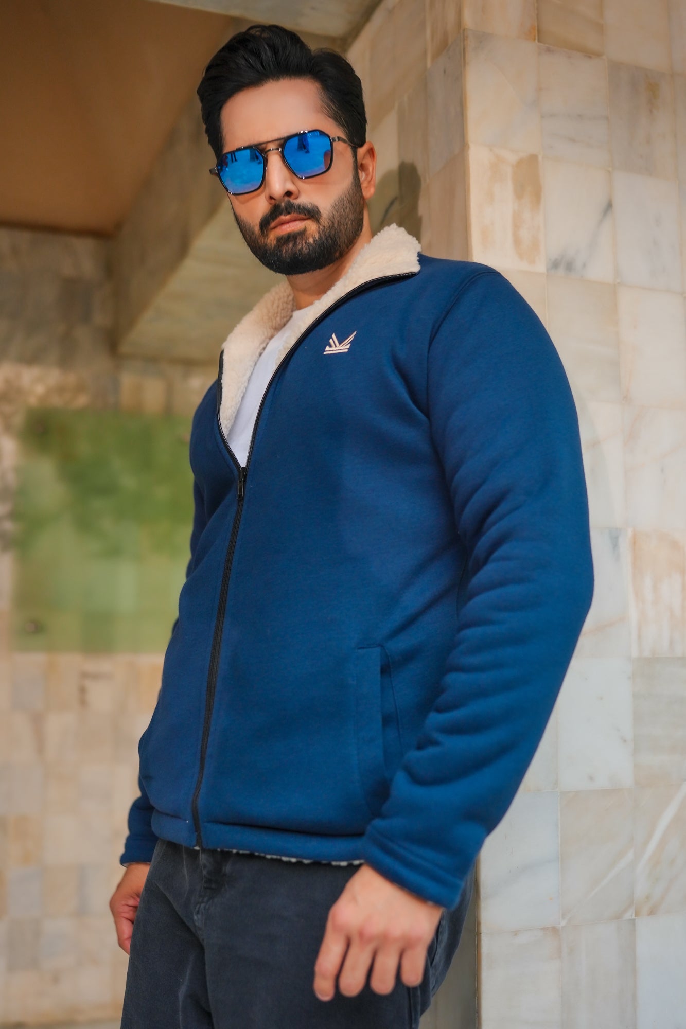 Reversible Sherpa Fleece Jacket - Navy/Skin